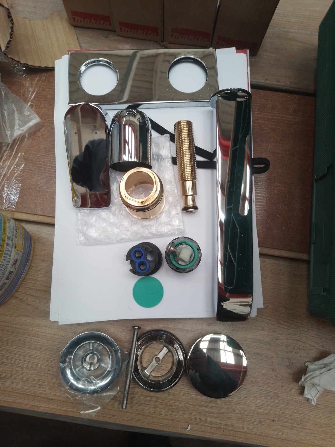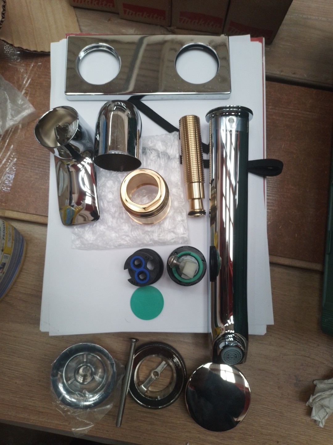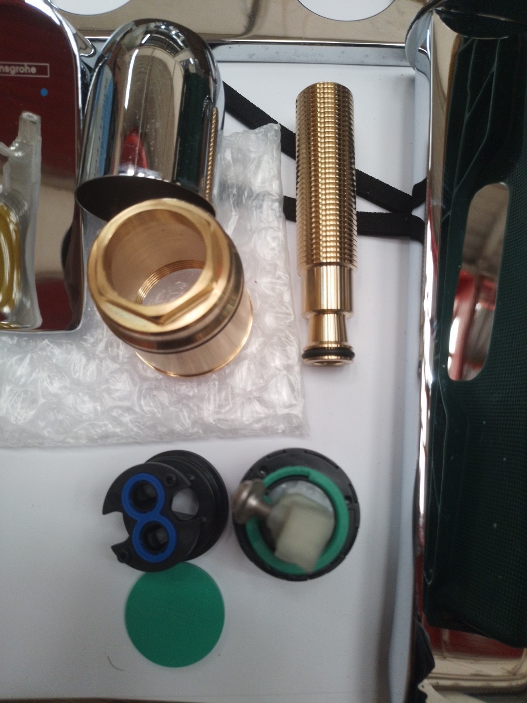 The tap includes everything you see in the pictures, there may or may not be parts missing, no instruction manual, damaged box, hence amazingly low price