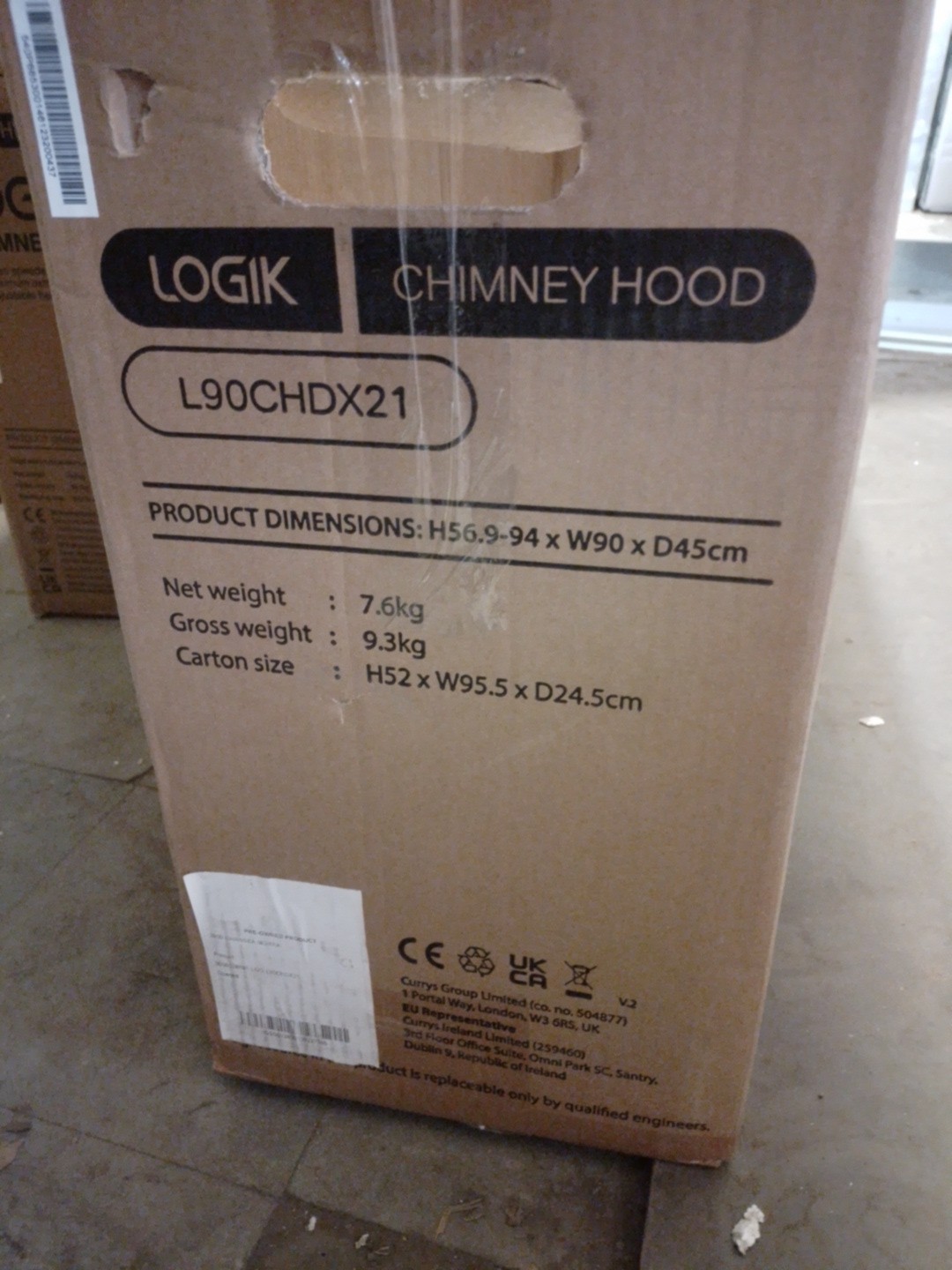 LOGIK L90CHDX21 90cm Chimney Cooker Hood Stainless Steel