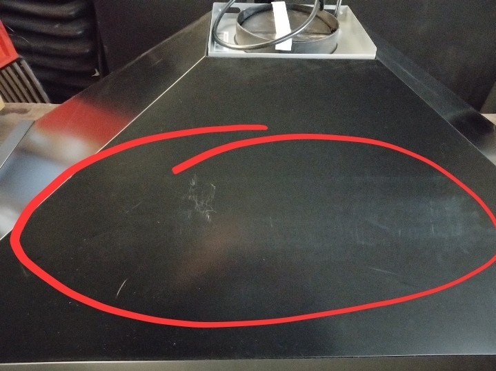 Has some marks to the face, side and top of hood and a small dent to the left corner and a pin dent to the face, hence amazingly low price